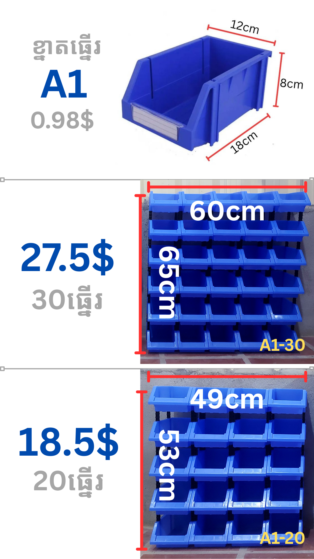 ប្រអប់ធ្នើរជ័រ ខ្នាត អេ១